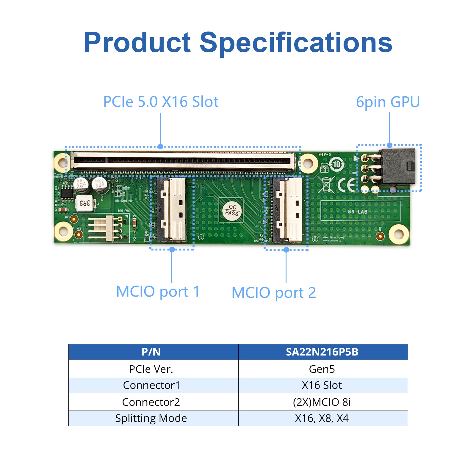 ● Support X4, X8, X16 Splitting modes, PCIe X4/X8 mode, please connect to MCIO Port 1, need the motherboard or BIOS bifurcation to X4 or X8 mode.