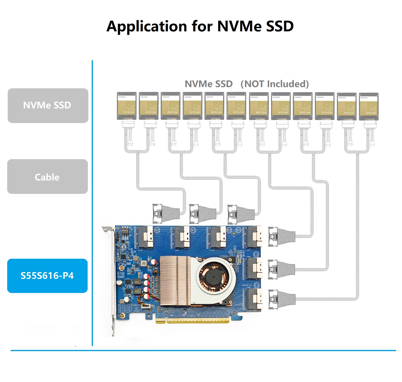 ● Integration PEX88096 PCIe switch chip, with Bifurcation function. NOT Requires Motherboard with Bifurcation function.
