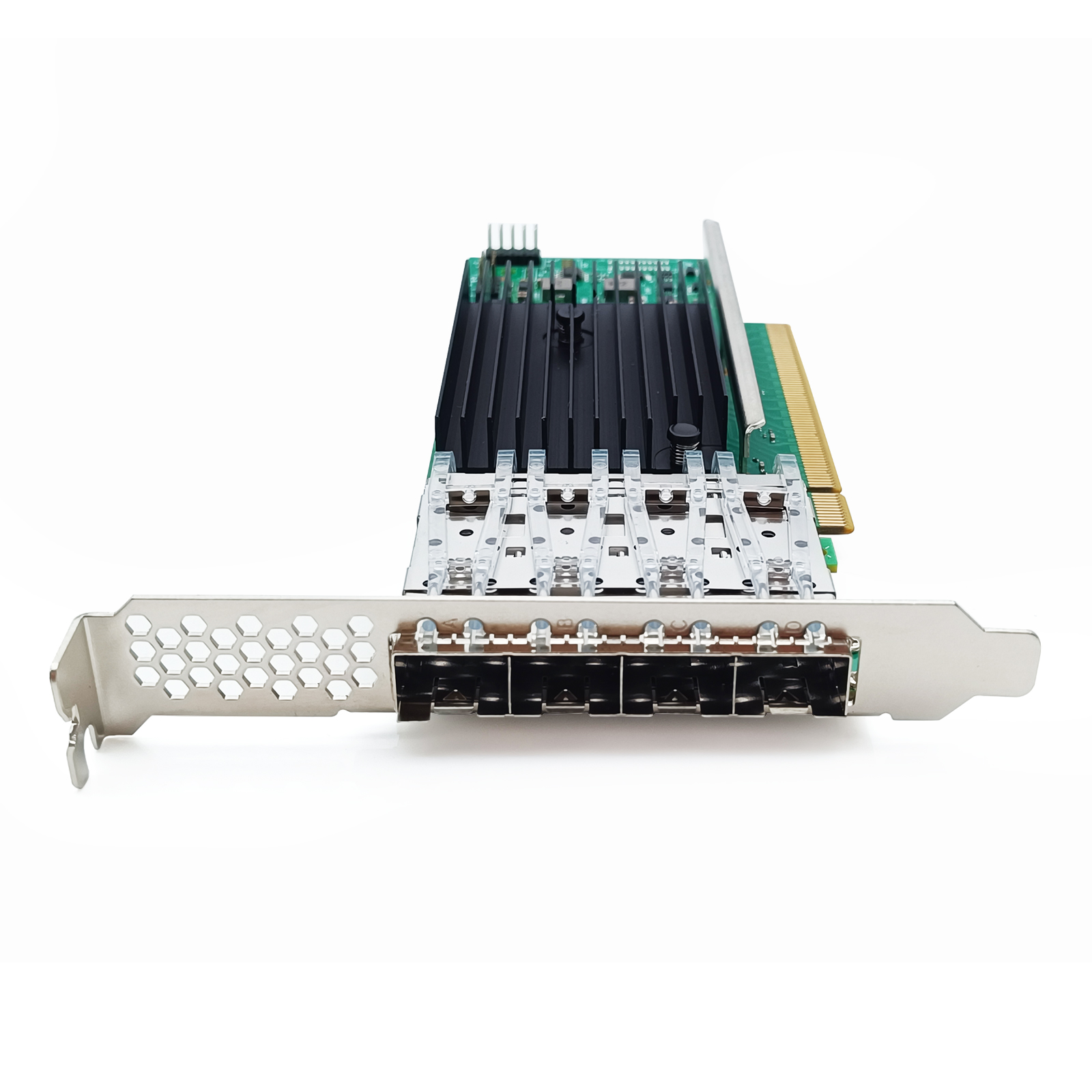 Based on the Intel E810 controller, this adapter features 4x 25G SFP28 ports, each supporting data rates of 1Gbps, 10Gbps, and 25Gbps. It is compatible with DAC, AOC, and various SFP28 optical modules (1000BASE-SX/LX, 10GBASE-SR/LR, 25GBASE-SR/LR), ensuring flexible and high-bandwidth connectivity for data centers.