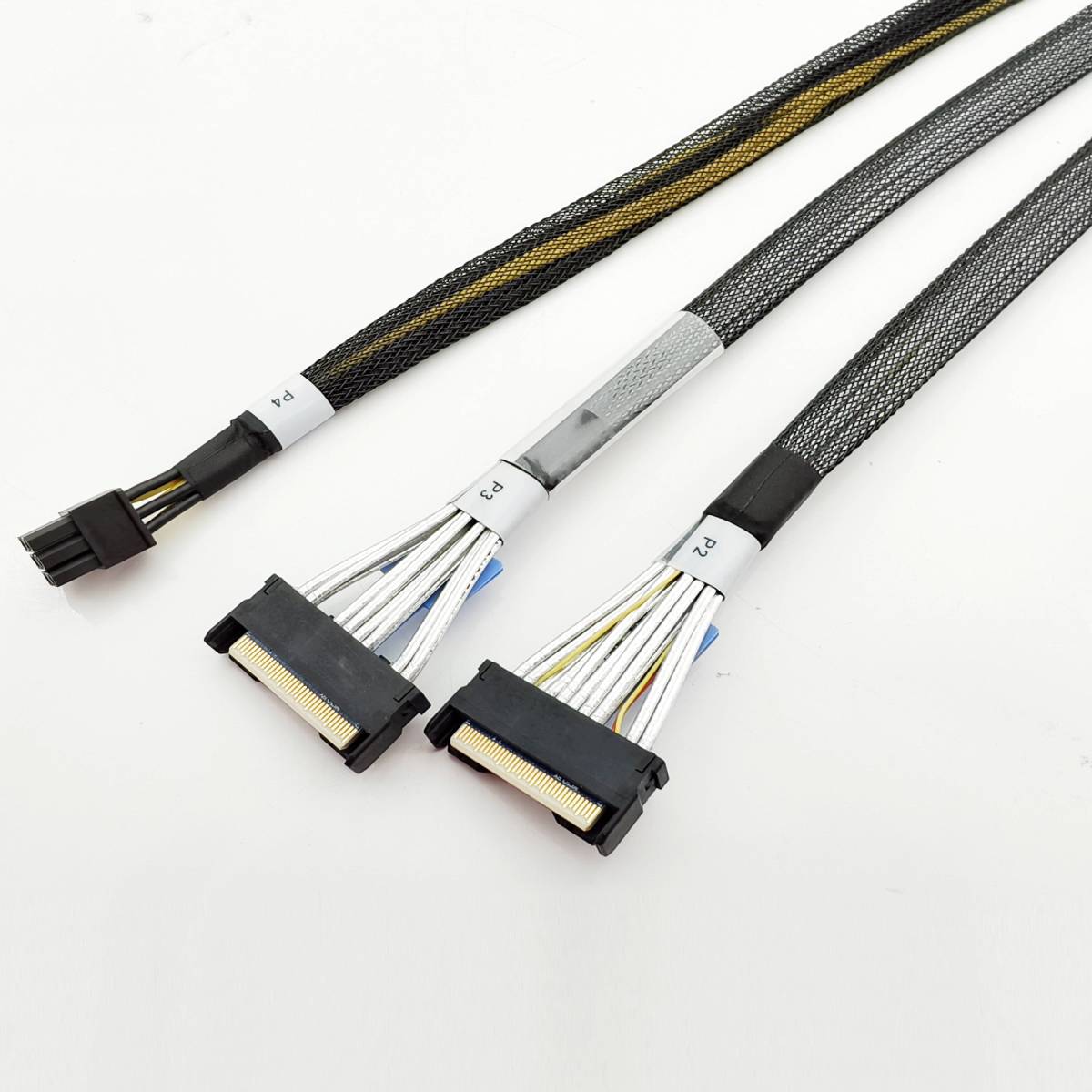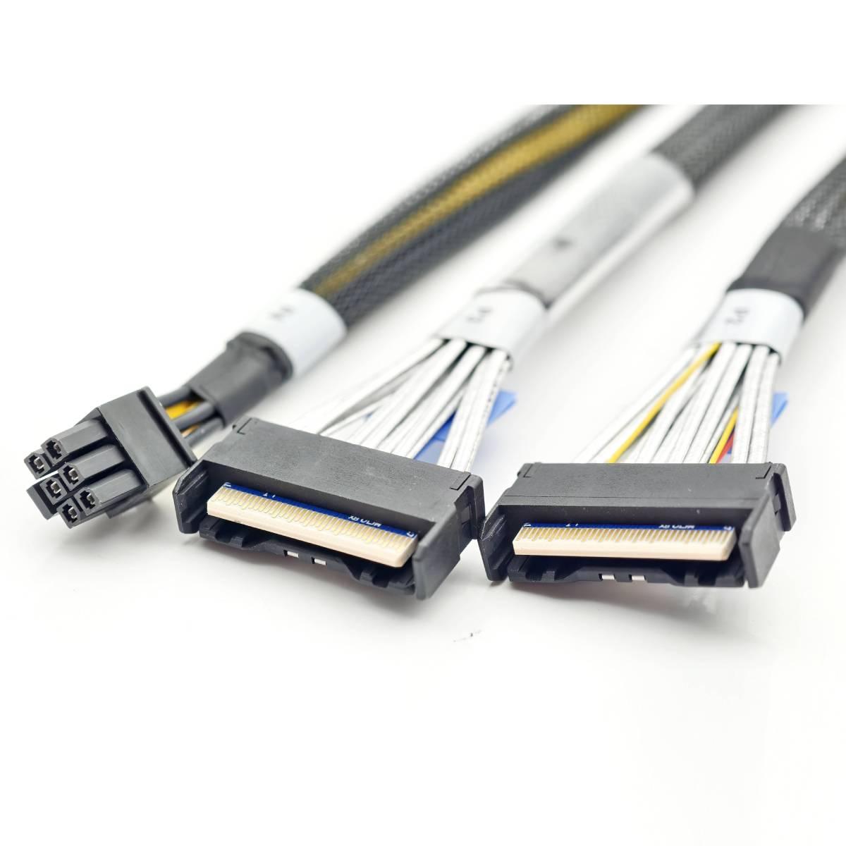 PCIe 5.0 X16 Side Exit to 2x MCIO 8i Straight with 6-Pin Power, up to 0.8 meter