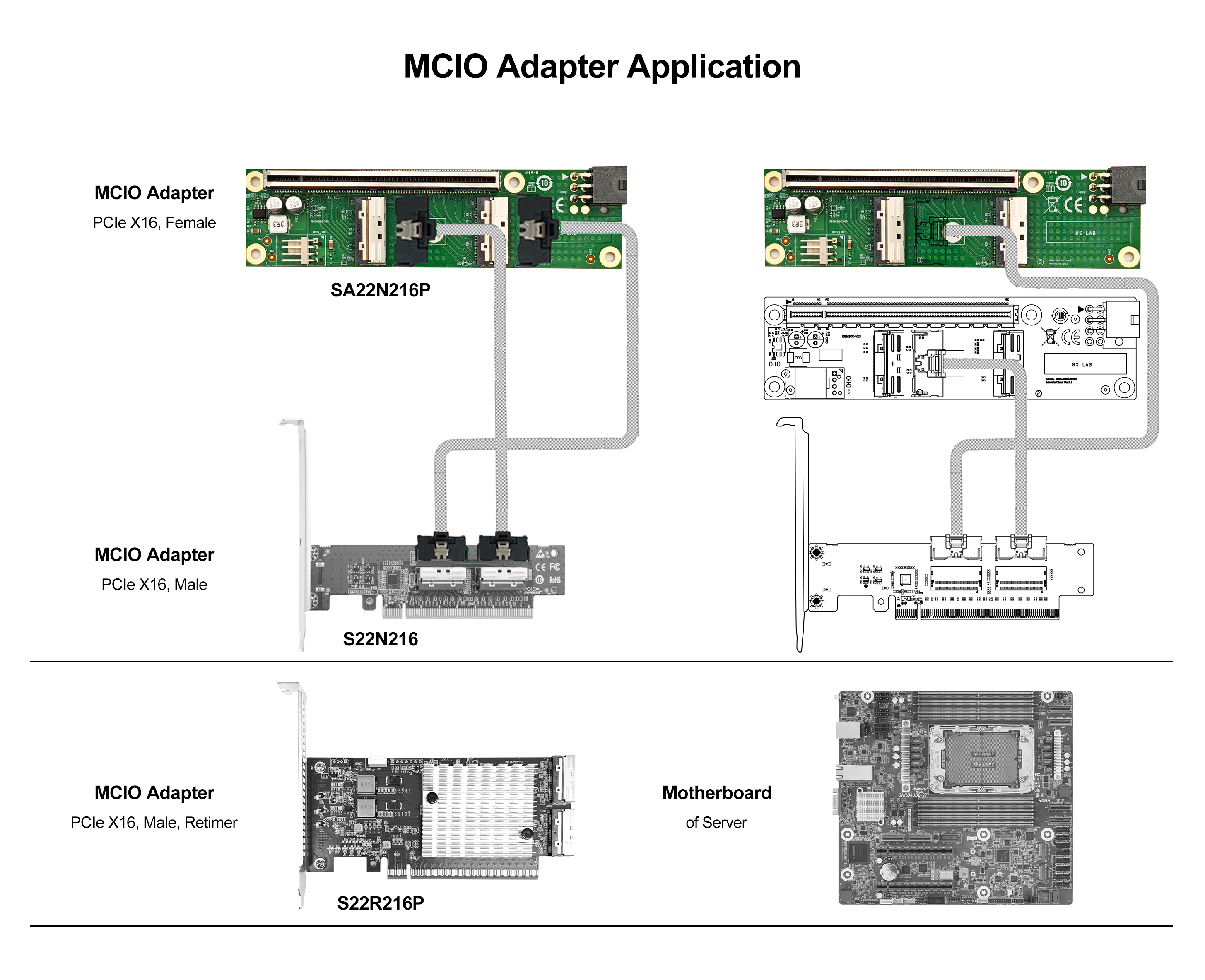 Dual MCIO to PCIe 5.0 Female Adapter, Requires Motherboard BIOS Support for Bifurcation