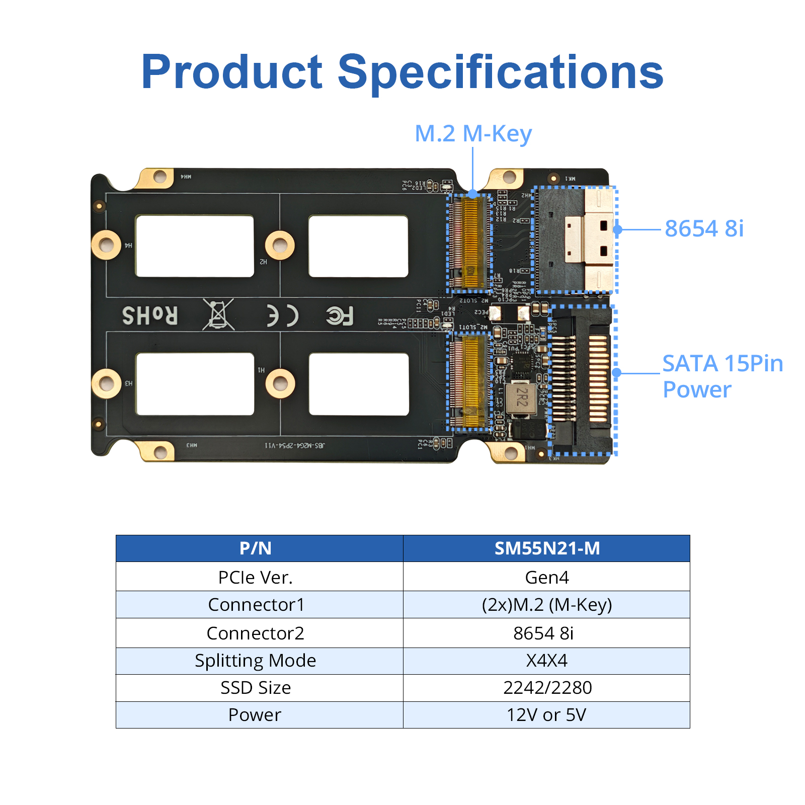 ● Only working with M.2(M-Key) interface, NOT working with M.2(B-Key/B&M-Key) interface. SSD size : 2280, 2242.