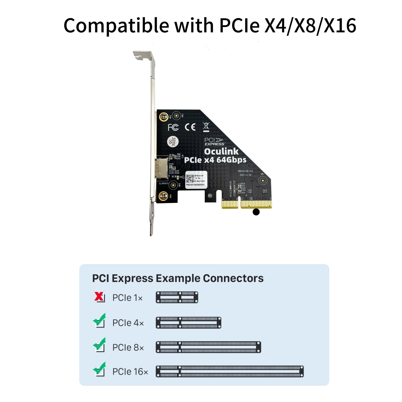 ● Working with PCIe x4/x8/x16 slots. NOT working with PCIe X1 slots.