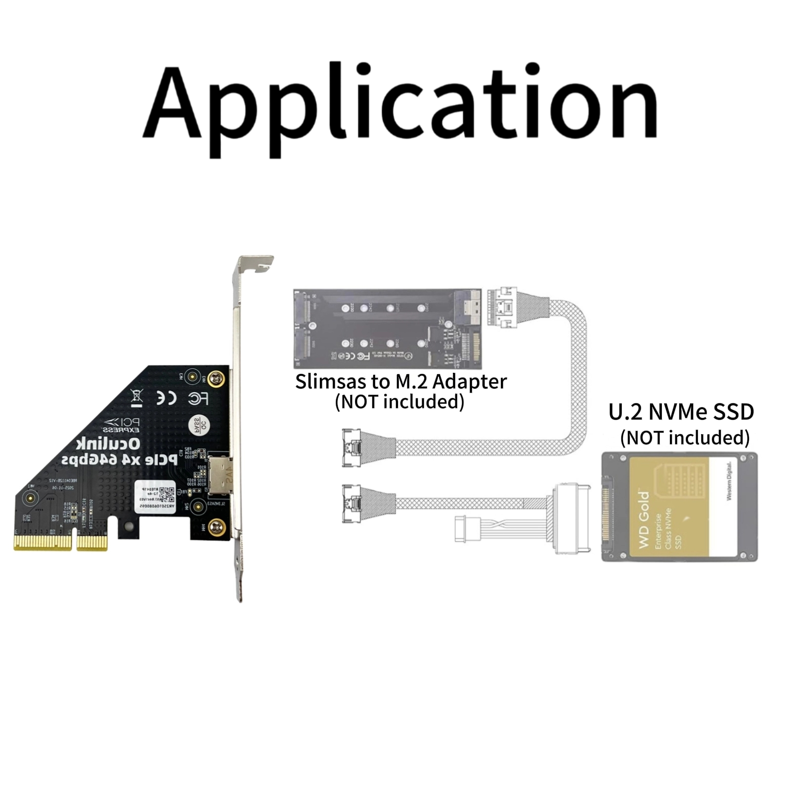 PCIe4.0 X4 to Oculink (SFF-8612 4i) Adapter, for eGPU & NVMe SSD, Applicable to Windows Server/Windows/Linux/VMwareESX/ESXi/FreeBSD/CentOS/Ubuntu system